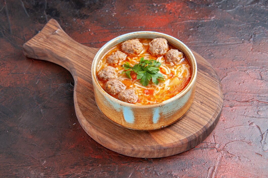 Surati Pavbhaji Manchurian Soup – A flavorful Indo-Chinese classic that combines the comfort of a warm soup with the bold taste of soft, juicy Manchurian balls. This hearty soup starts with a fragrant base of garlic, ginger, spring onions, and select spices, simmered to create a rich, savory broth. Into this delicious base, perfectly cooked vegetable Manchurian balls—made with finely chopped cabbage, carrots, capsicum, and herbs—are added, allowing them to soak up the tangy and spicy flavors.